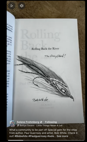 I've been busy for the past week, and am only now getting caught up. Last Friday through Sunday, I attended the Maine Sportsman's Show at the Augusta Civic Center, (March 27-29) where I hung out in Master Maine Fishing Guide Sean McCormick's Blue Heron Fly Fishing booth, selling and signing a whole lot of copies of Rolling Back the River. It was a great show, and talking nonstop all weekend to a parade of anglers, including Sean and his fishing-guide son, Michael, made the time fly past. On the evening of Friday, March 27, I did a joint reading and book signing with authors Jon Bott and Lou Zambello at Selene's Fly Shop in beautiful downtown Gardiner, Maine. A great event, during which I presented Selene with a copy of RBtR—which was not only signed by me, but also decorated on an inside page with an original drawing by artist Bob White—who not only painted the beautiful cover illustration for my novel, but was John Gierach's illustrator for decades—right up until the day John passed away. On Saturday, March 28, I signed books and hung out at the Waldo Threater in in beautiful downtown Waldoboro, Maine, where the George's River Chapter of Trout Unlimited sponsored Maine's only 2026 visit by the Fly Fishing Film Tour. Below, I've posted a few photos from the event at Selene's. If you're on Facebook, you can probably access Selene's short video—with music!—on the event here. AND . . . if you'd like your own signed copy of RBtR, vist the website for Bob White Studio, and Bob and Lisa will hook you up. For an extra price, Bob will even do a custom drawing for you on the title page—of pretty much any fly you'd like him to put there.